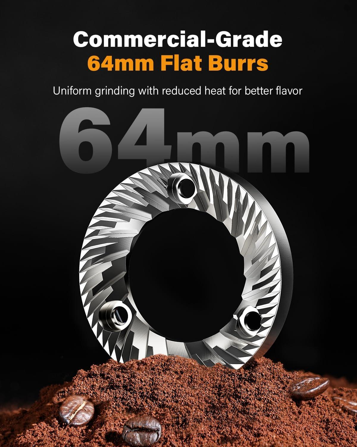 64mm SUS420 Stainless Steel Food-Grade Flat Burr: Crafted with high-precision engineering, these large burrs deliver consistent grind size while minimizing heat buildup to preserve the rich aroma of premium coffee beans.